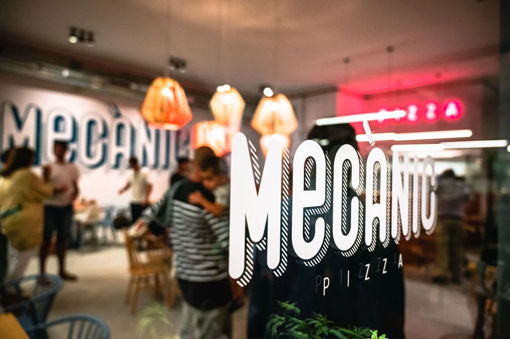Pues esto es precisamente lo que han hecho en Mecànic Pizza. En 2019 montaron una pizzería en Sant Cugat del Vallès (Barcelona) y en el momento de plantear la reforma del local (un antiguo taller mecánico), seguramente pensaron… ¿y si conservamos todos los elementos estéticos del taller, y de paso nos ahorramos un pellizco importante en las obras de reforma y acondicionamiento del local, incluso en el naming?